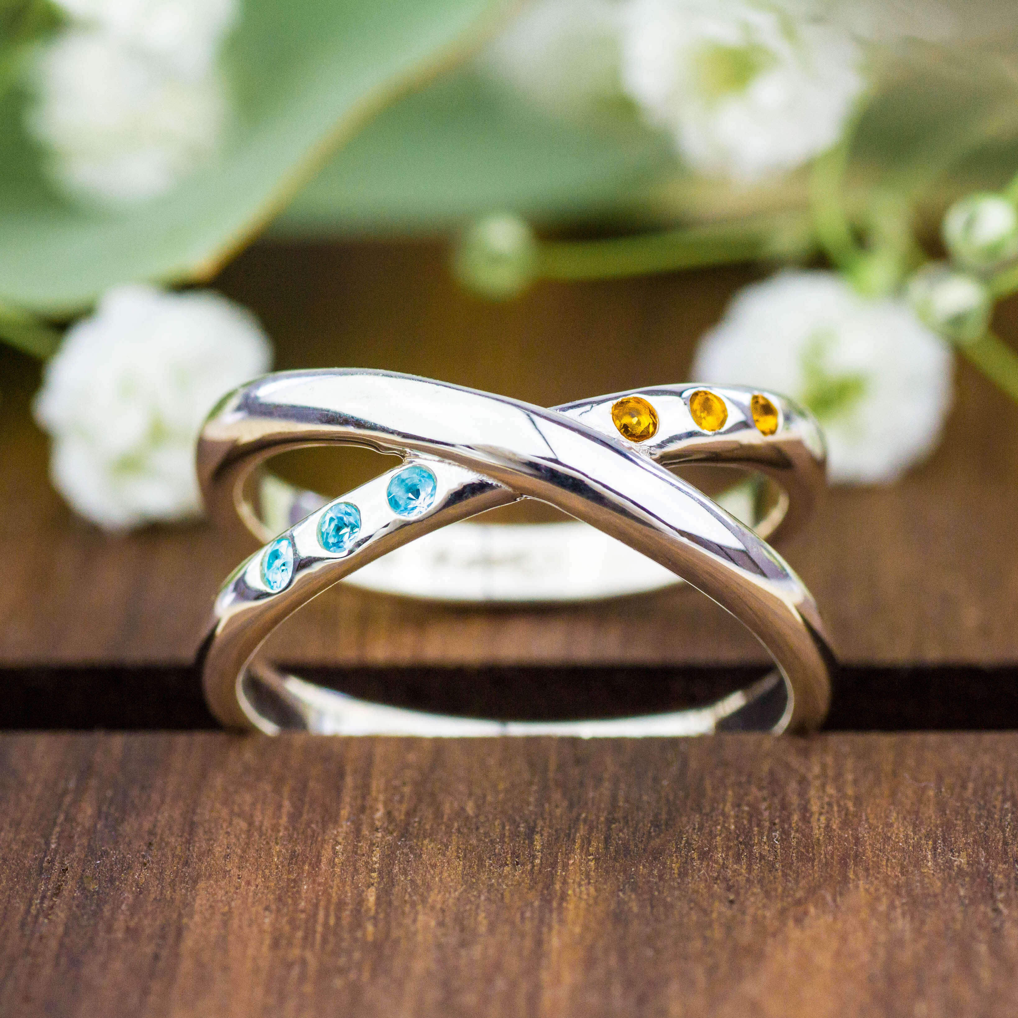 Dieser 925 Silber Doppelring mit himmelblauem Topas und sonnengelbem Citrin ist eine Hommage an die magischen Morgenstunden Balis. Die kraftvolle Komposition der zwei Ringe vereint sich mit den sorgfältig ausgewählten Edelsteinen zu einem Statement-Piece, das Stärke und Eleganz perfekt verbindet. Ein handgefertigtes Schmuckstück, das durch sein imposantes Design und die lebendige Farbkombination täglich aufs Neue begeistern wird.