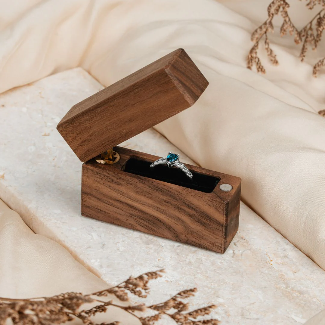 Gefertigt aus edlem 585 Weißgold, trägt er im Zentrum einen echten australischen Saphir in eleganter Tropfenform – tiefblau, ausdrucksstark und verantwortungsvoll gewonnen in den abgelegenen Edelsteinfeldern Queenslands.